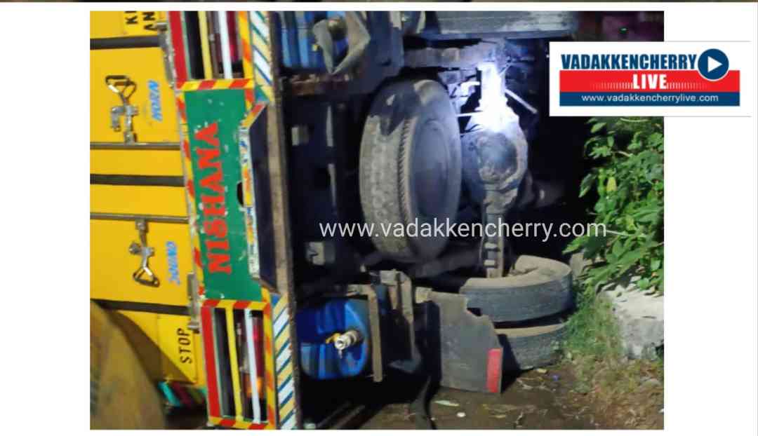 വടക്കഞ്ചേരി:തൃശ്ശൂർ പാലക്കാട് ദേശീയ പാതയിൽ മംഗലം പാലത്ത് മീനുമായി പോവുകയായിരുന്ന ലോറി ഡിവൈഡറിൽ ഇടിച്ച് മറിഞ്ഞു ഡ്രൈവർക്കും ക്‌ളീനർക്കും പരുക്ക്.തൃശ്ശൂരിൽ നിന്നും പാലക്കാട് ദിശയിലേക്ക് പോവുകയായിരുന്ന ലോറി ഡിവൈഡറിൽ ഇടിച്ച് മറിയുകയായിരുന്നു.അപകടത്തിൽ ക്‌ളീനറുടെ കൈ ഒടിഞ്ഞു.ഇവരെ അടുത്തുള്ള സ്വകാര്യാശുപത്രിയിൽ പ്രവേശിപ്പിച്ചു.ഡ്രൈവർ ഉറങ്ങിപ്പോയതാണ് അപകടത്തിന് കാരണമെന്നാണ് പ്രാഥമീക നിഗമനം.ഇന്ന് പുലർച്ചെ മൂന്നു മണിക്കാണ് സംഭവം.
