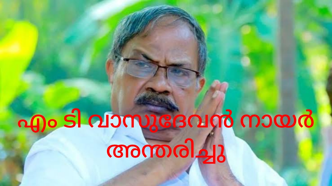 കോഴിക്കോട്. പ്രശസ്ത എഴുത്തുകാരനും തിരക്കഥാകൃത്തും ചലച്ചിത്ര സംവിധായകനുമായ എം ടി എന്നറിയപ്പെടുന്ന മാടത്ത് തെക്കേപ്പാട്ട് വാസുദേവൻ നായർ അന്തരിച്ചു. വാർധക്യസഹജമായ അസുഖങ്ങളെതുർന്ന് കോഴിക്കോട് സ്വകാര്യ ആശുപത്രിയിൽ ചകിത്സയിലിരിക്കെ ഇന്ന് രാത്രി പത്ത് മണിയോടെയാണ് അന്ത്യം. സംസ്കാരം വ്യാഴാഴ്ച കോഴിക്കോട് മാവൂർ റോഡ് ശ്മശാനത്തിൽ.