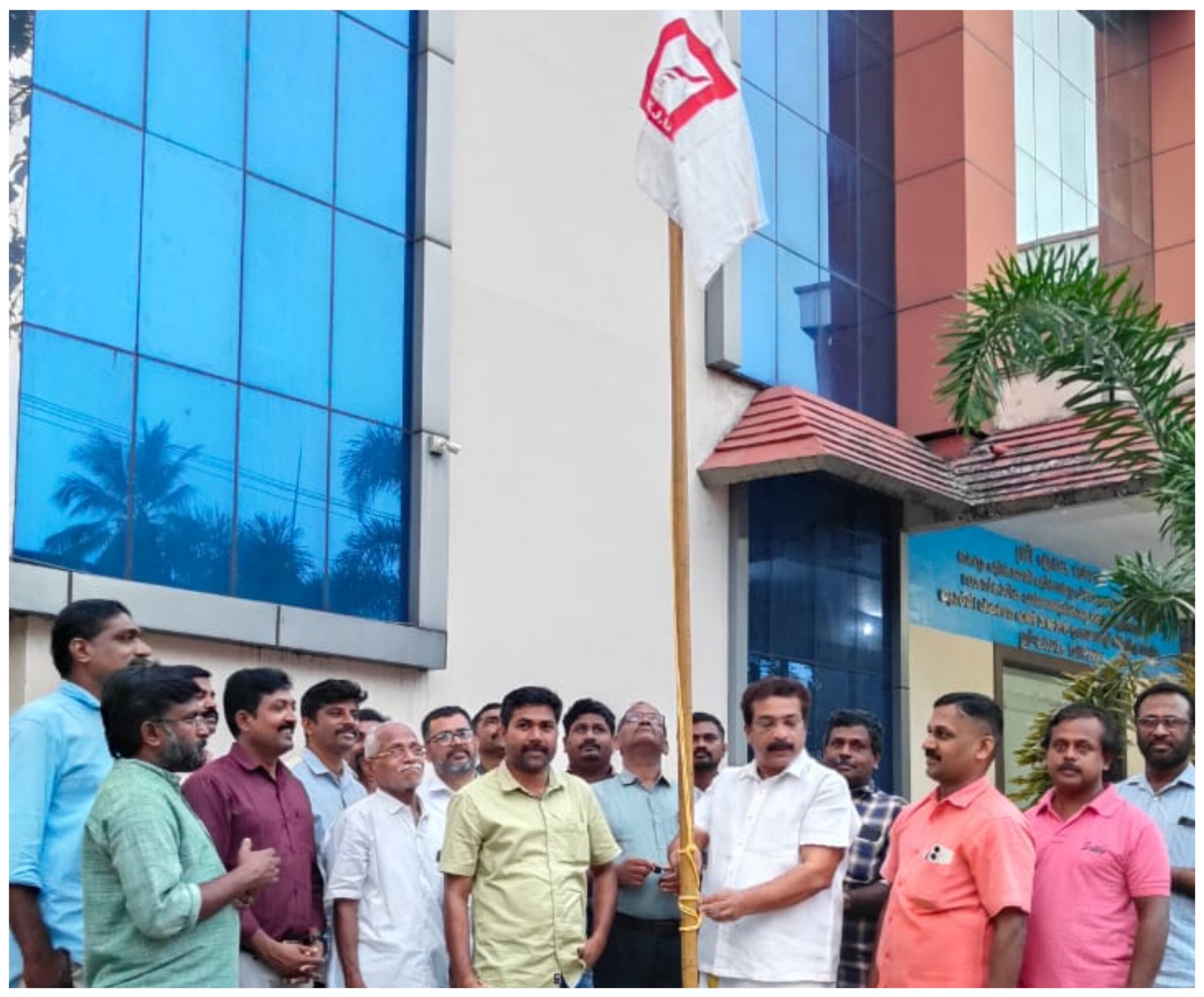ഇ എം എസ് കമ്മ്യൂണിറ്റി ഹാളിൽ സ്വാഗത സംഘം ചെയർമാൻ ബോബൻ ജോർജ്ജ് പതാക ഉയർത്തി.