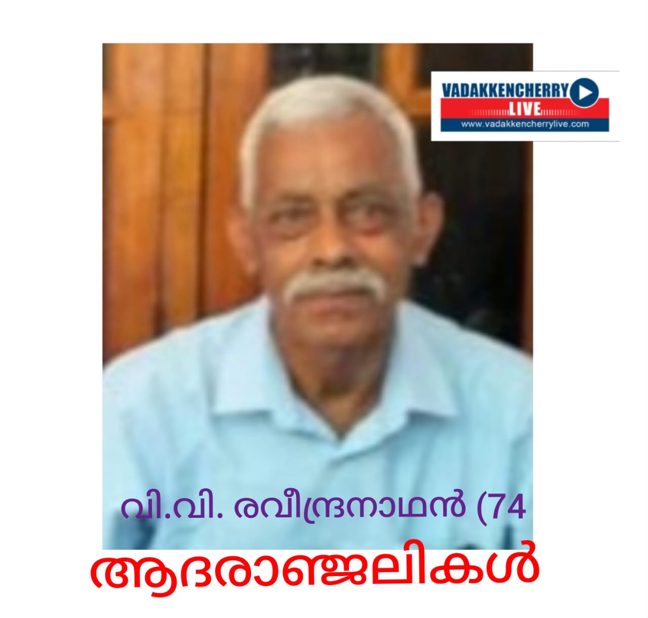 വടക്കഞ്ചേരി: ആമക്കുളം അമ്പാട്ടുപറമ്പിൽ വി.വി. രവീന്ദ്രനാഥൻ (74) അന്തരിച്ചു.
