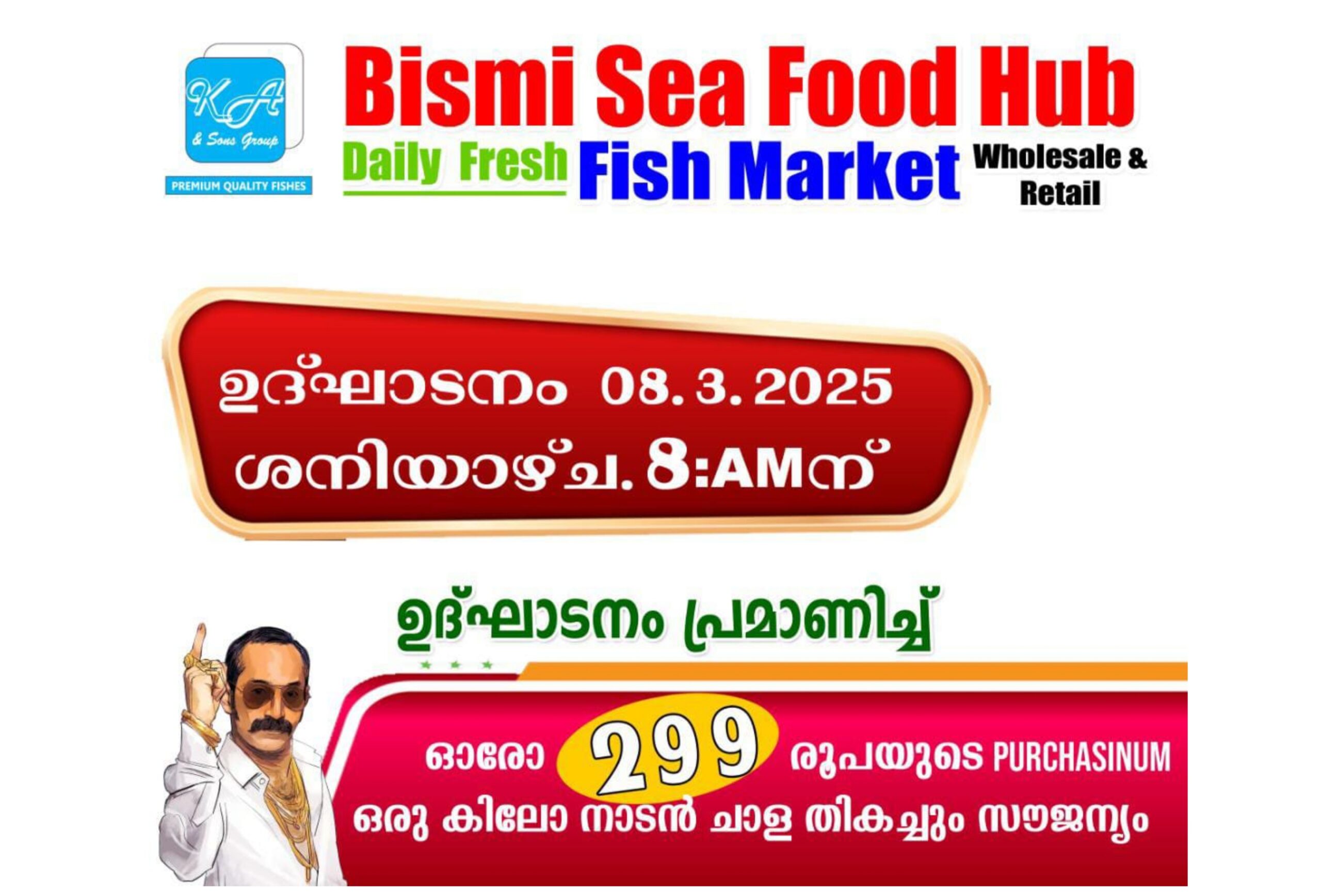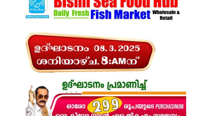 കടലോളം ഫ്രഷ് മത്സ്യങ്ങളുമായി ബിസ്മി സീ ഫുഡ്‌ ഹബ് നാളെ മുതൽ മുടപ്പല്ലൂരിലും