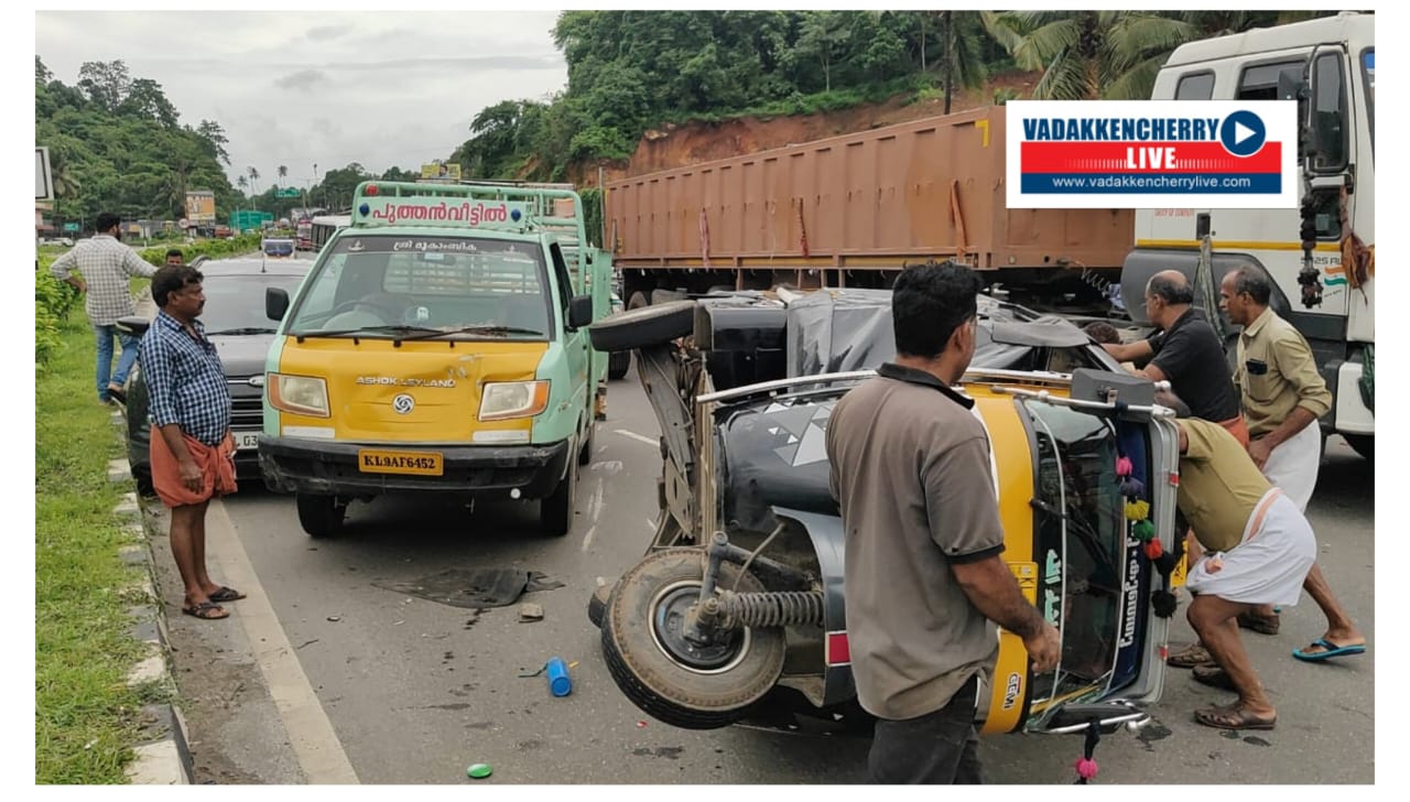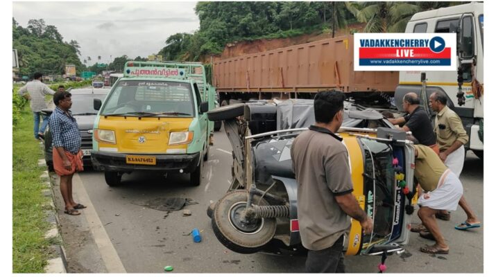 വടക്കഞ്ചേരി: ദേശീയപാത തേനിടുക്കിന് സമീപം വാഹനങ്ങളുടെ കൂട്ടിയിടി; ഒരാൾക്ക് പരിക്ക്. വെളളിയാഴ്ച പകൽ മൂന്ന് മണിയോടു കൂടിയാണ് സംഭവം.വടക്കഞ്ചേരി ഭാഗത്തേക്ക് വരുകയായിരുന്ന കാർ പെട്ടെന്ന് ബ്രേക്ക് ചെയ്തതിനെ തുടർന്ന് പുറകെ വന്ന ഓട്ടോറിക്ഷ കാറിൽ ഇടിച്ച് മറിയുകയായിരുന്നു. ഓട്ടോറിക്ഷയുടെ പുറകിൽ പിക്കപ്പ് വാനും, പിക്കപ്പ് വാനിന് പുറകിൽ മറ്റൊരു കാറും ഇടിച്ചാണ് അപകടം സംഭവിച്ചത്. ഓട്ടോ ഡ്രൈവർ കിഴക്കഞ്ചേരി തച്ചക്കോട് മുഹമ്മദ് കാസിം (52) നാണ് പരിക്കേറ്റത്.ഇയാൾ വടക്കഞ്ചേരി സ്വകാര്യ ആശുപത്രിയിൽ ചികിത്സ തേടി