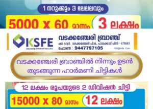 വടക്കഞ്ചേരി:കെ എസ് എഫ് ഇ ഹാർമണി ചിട്ടികളുടെ സീരിസ് 2 വിന്റെ ബ്രാഞ്ച് തല സമ്മാനദാനം ടൗൺ വാർഡ് മെമ്പർ അൻവർ വി എ നിർവഹിച്ചു.കെ എസ് എഫ് ഇ ചിട്ടികളുടെ വിശ്വാസ്ഥതയും പ്രതിബദ്ധതയും നാടിന് അഭിമാനമാണെന്ന് ഉത്ഘാടനം നിർവഹിച്ച് കൊണ്ട് അദ്ദേഹം പറഞ്ഞു.ചടങ്ങിൽ 42 പേർക്കുള്ള ഫ്യൂൽ കാർഡ് വിതരണം നടത്തി.ബ്രാഞ്ച് മാനേജർ രതീഷ് കുമാർ ആദ്യക്ഷത വഹിച്ചു.ബൈഞ്ജിത്ത്, ശിൽപ മോൾ എന്നിവർ സംസാരിച്ചു.