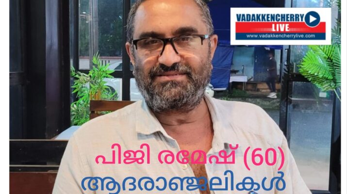 News November 7, 2025November 7, 2025 വി വി കാറ്ററിംഗ് ഉടമ പിജി രമേഷ് (60) നിര്യാതനായി Posted By: admin 0 Comment വടക്കഞ്ചേരി:വി വി കാറ്ററിംഗ് ഉടമ കറ്റുകോട് വെങ്കിടേശ്വരയിൽ പി ജി രമേഷ് (60) അന്തരിച്ചു.