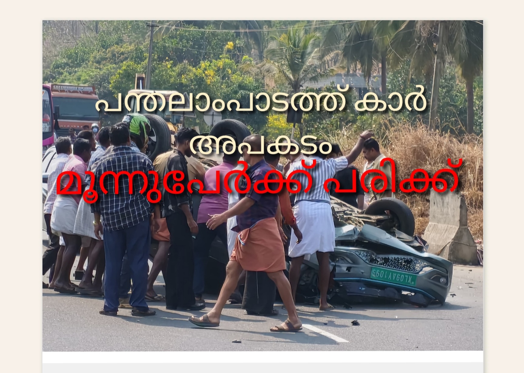 പന്തലാംപാടത്ത് കാർ അപകടം. മൂന്നുപേർക്ക് പരിക്ക്