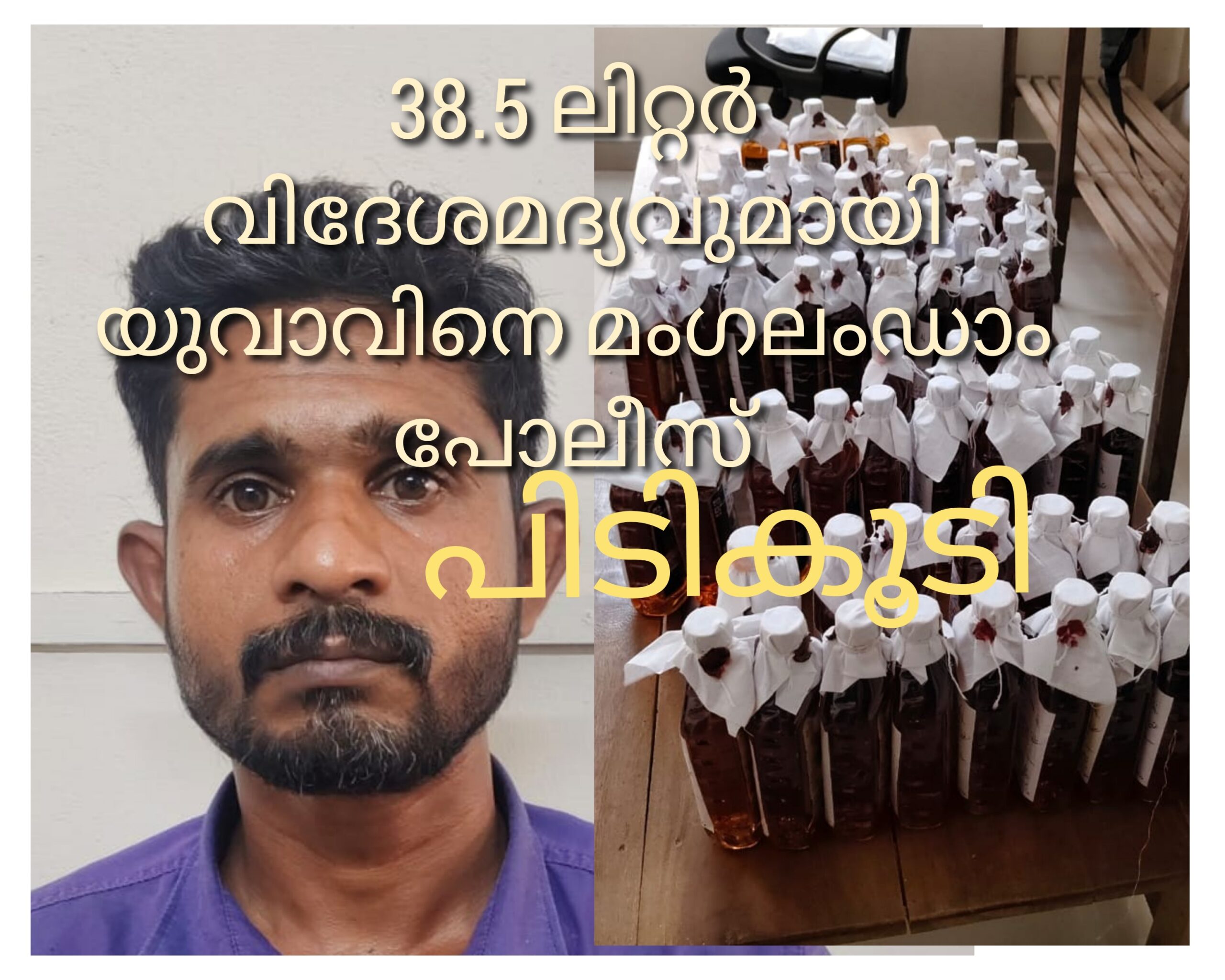 മംഗലംഡാം: 38.5 ലിറ്റർ വിദേശമദ്യവുമായി യുവാവിനെ മംഗലംഡാം പോലീസ് പിടികൂടി. കിഴക്കഞ്ചേരി കളവപ്പാടം രാമൻകുട്ടിയാണ്(36) അറസ്റ്റിലായത്. ഞായറാഴ്ച രാവിലെ പത്തിന് മംഗലംഡാം പോലീസും ഡാൻസാഫ് സ്ക്വാഡും നടത്തിയ പരിശോധനയിൽ മദ്യം ചാക്കിലാക്കി കൊണ്ടു പോകുന്നതിനിടെ രാമൻകുട്ടിയെ പിടികൂടികയായിരുന്നു. അരലിറ്ററിന്റെ 77 കുപ്പി മദ്യമാണ് ചാക്കിലുണ്ടായിരുന്നത്. ആലത്തൂർ കോടതിയിൽ ഹാജരാക്കിയ രാമൻകുട്ടിയെ റിമാൻഡ് ചെയ്തു.