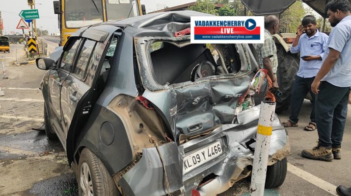 ദേശീയപാത വടക്കഞ്ചേരിയിൽ കാറിന് പുറകിൽ ലോറിയിടിച്ച് രണ്ട് പേർക്ക് പരിക്ക്