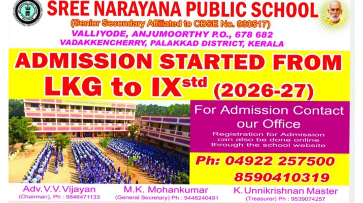 വള്ളിയോട് ശ്രീ നാരായണ പബ്ലിക് സ്കൂളിൽ അഡ്മിഷൻ ആരംഭിച്ചു