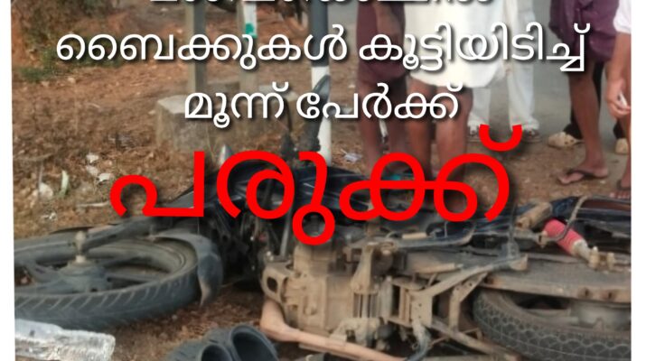 മംഗലംഡാമ്മിൽ ബൈക്കുകൾ കൂട്ടിയിടിച്ച് മൂന്ന് പേർക്ക് പരുക്ക്.