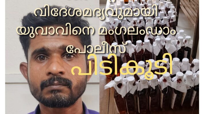 38.5 ലിറ്റർ വിദേശമദ്യവുമായി യുവാവിനെ മംഗലംഡാം പോലീസ് പിടികൂടി.