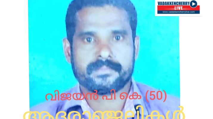 വടക്കഞ്ചേരി: പൊത്തപ്പാറ ആവിയിൽ വീട്ടിൽ വിജയൻ പി കെ (50) നിര്യാതനായി. സംസ്കാരം ഇന്ന് നാല് മണിക്ക് ഐവർ മഠത്തിൽ. ഭാര്യ:സുനിത മക്കൾ:വിഷ്ണു,ജിഷ്ണു