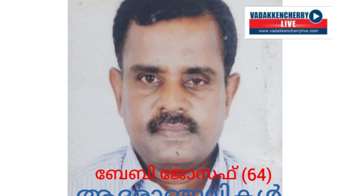 വടക്കഞ്ചേരി: മുത്തൂറ്റ് ഫിനാൻസ് റിട്ട. ചീഫ് മാനേജർ പാളയം ചേരത്തോട് വള്ളനാട്ട് വീട്ടിൽ പരേതനായ ജോസഫ് മകൻ ബേബി ജോസഫ് (64) അന്തരിച്ചു. സംസ്കാരം നാളെ (തിങ്കൾ) രാവിലെ 10.30 ന് വടക്കഞ്ചേരി