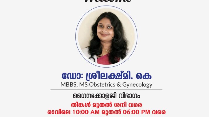 ഡിവൈൻ ഹോസ്പിറ്റലിൽ ഗൈനക്കോളജി വിഭാഗത്തിൽ ഡോ:ശ്രീലക്ഷ്മി.കെ പുതുതായി ചാർജെടുത്തിരിക്കുന്നു