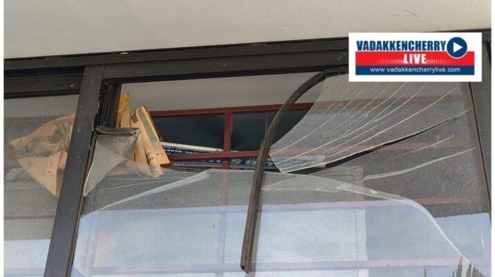 വടക്കഞ്ചേരി സബ്ബ് രജിസ്റ്റാർ ഓഫീസിലെ ജനൽ ചില്ലുകൾ തകർത്ത നിലയിൽ