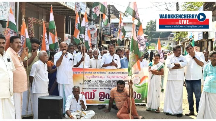ഗ്രാമം റോഡിന്റെ തകർച്ച:വടക്കഞ്ചേരിയിൽ കോൺഗ്രസ് റോഡ് ഉപരോധിച്ചു.