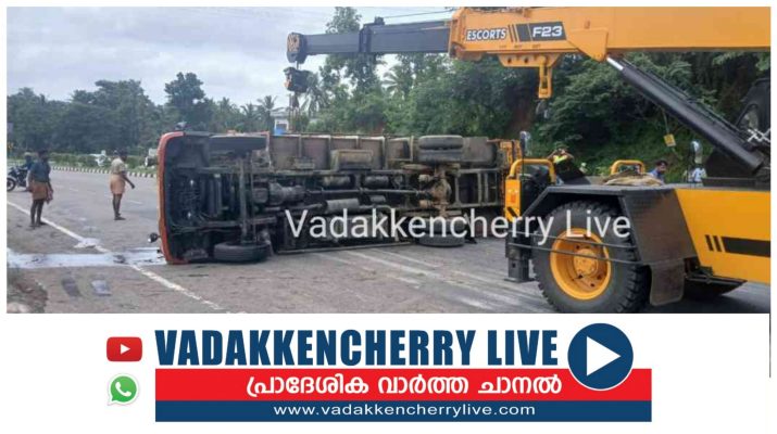 ദേശീയ പാതയിൽ നിയന്ത്രണം തെറ്റിയ ലോറി പാതക്ക് കുറുകെ മറിഞ്ഞു.