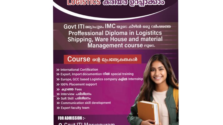 PROFESSIONAL DIPLOMA IN LOGISTICS SHIPPING AND WAREHOUSE MANAGEMENT അഡ്മിഷൻ തുടരും Global job Opportunities Affordable fee >>>100% Placement support 2 Govt ITI (IMC) Anjumoorthy Mangalam