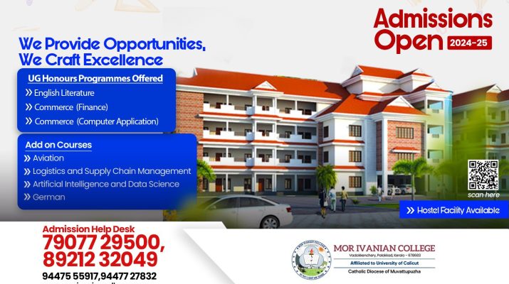 അഡ്മിഷൻ ആരംഭിച്ചു. 2023-ൽ വടക്കഞ്ചേരി ആമക്കുളത്ത് പ്രവർത്തനം ആരംഭിച്ച കാലിക്കട്ട് യൂണിവേഴ്സിറ്റിയിൽ അഫിലിയേറ്റഡ് ആയിട്ടുള്ള മോർ ഇവാനിയൻ കോളജ് പുതിയ അധ്യയന വർഷം ആരംഭിക്കുന്ന 2024 ജൂൺ 1 മുതൽ തേനിടുക്കിലെ പുതിയ